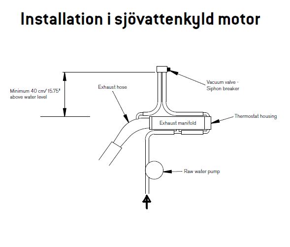 Vakuumventil, 12 mm. En vakuumventil som förhindrar att hävertverkan uppstår i motorns avgasutlopp, vilket kan leda till vattenintrång i motorn. Omgivningstemperaturen får inte överstiga 60 ºC. Ventilen öppnas vid ett tryck motsvarande 3-5 cm vattenpelare. Materialen är resistenta mot havsvatten och mot glykolblandningar i rätt koncentrationer.